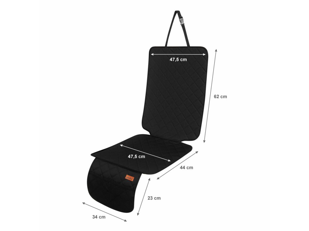Podložka do auta chráni čalúnenie auta pred poškodením alebo navlhnutím. Vyrobené z veľmi pevného materiálu, ktorý má vodotesné a protišmykové vlastnosti. Jednoduchá montáž, stačí rozložiť sedák. V spodnej časti má praktické vrecká, napr. na toaletné potreby alebo detské potreby. Chráni celú sedačku až po jej spodnú časť, takže vaše dieťa si nezašpiní čalúnenie topánkami. Autosedačka má na zadnej strane prvok, ktorý by mal byť umiestnený medzi operadlom a sedákom, ktorý zabraňuje pohybu podložky po autosedačke.