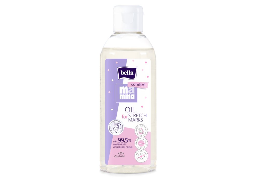 Olej proti striám BELLA Mamma Comfort je špeciálne vyvinutý na starostlivosť o pokožku počas tehotenstva a po pôrode. Pomáha zvyšovať jej pružnosť, predchádzať vzniku strií a podporuje regeneráciu.