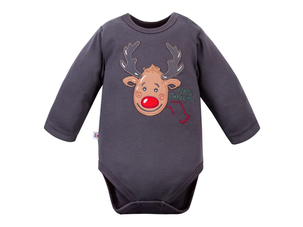 Očarujúca vianočná súprava pre najmenších z kolekcie "Hi Reindeer", vyrobená z mäkkej a jemnej bavlny, ktorá je šetrná k detskej pokožke. Súprava sa skladá z body zdobeného slávnostnou výšivkou a pohodlných nohavíc, ktoré vytvárajú harmonický a jedinečný vzhľad. Je to perfektná voľba pre rodinné stretnutia, slávnostné fotenie a čarovné zimné dni.