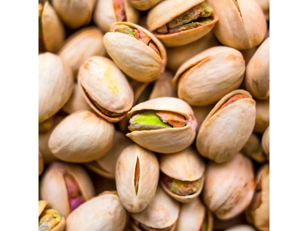 Vyzreté, ľahko pražené, solené pistácie. Pistácie sú veľmi kvalitným zdrojom bielkovín a poskytujú adekvátne a vyvážené množstvo aminokyselín. Pistácie obsahujú tuky, tuk je však prevažne mononenasýtený, podobne ako v olivovom oleji.
