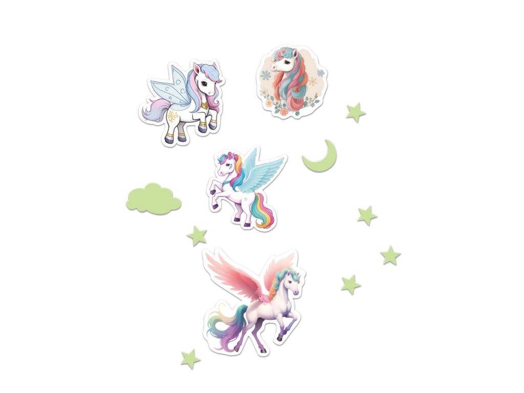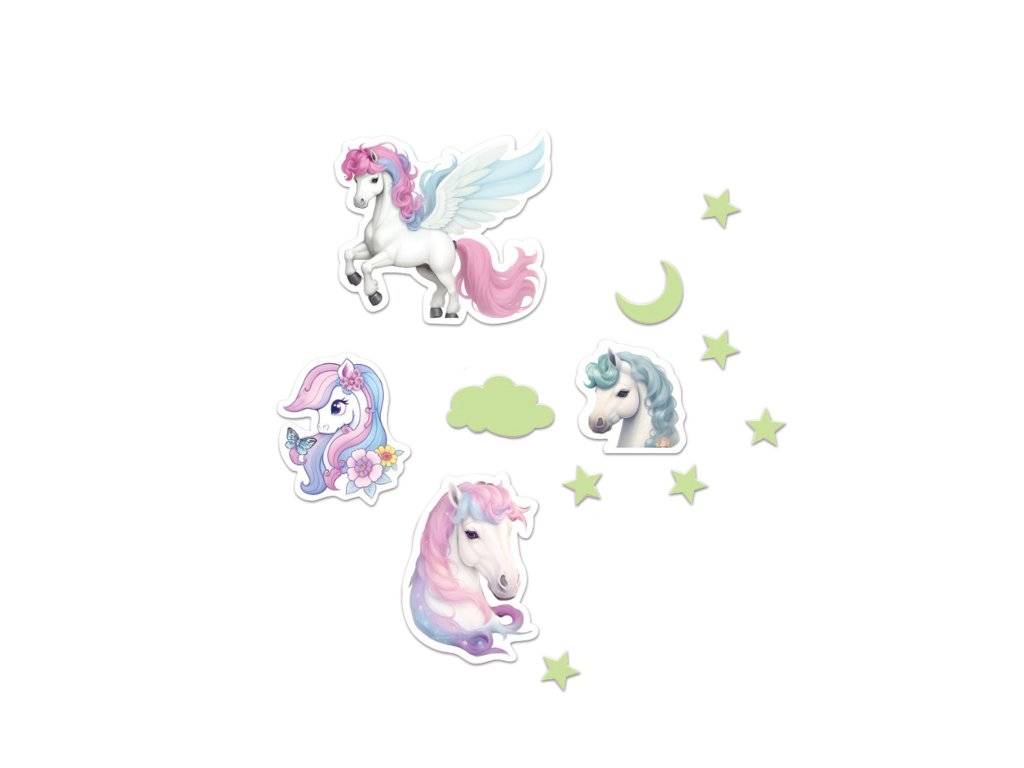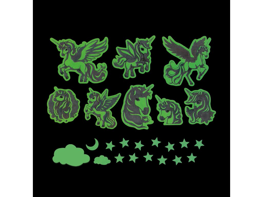 Dekorácia jednorožce na stenu, alebo na nábytok. Po zhasnutí svieti v tme.