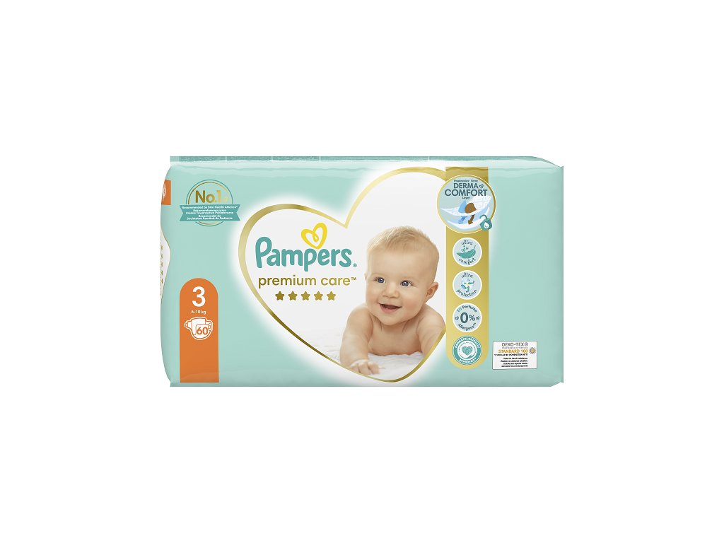 Detské jednorazové plienky Pampers Premium care 3, 60 ks, 6-10 kg
