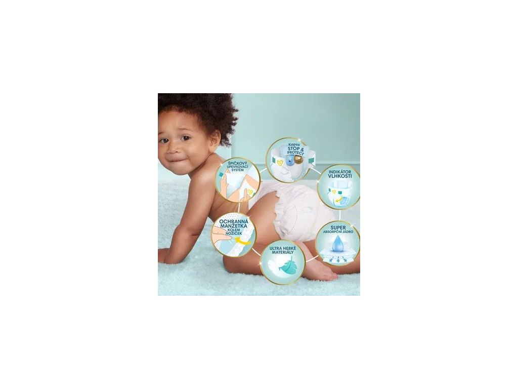 - Vybrané materiály hebké ako pierko - Pre najjemnejší dotyk s pokožkou vášho dieťatka od Pampers.