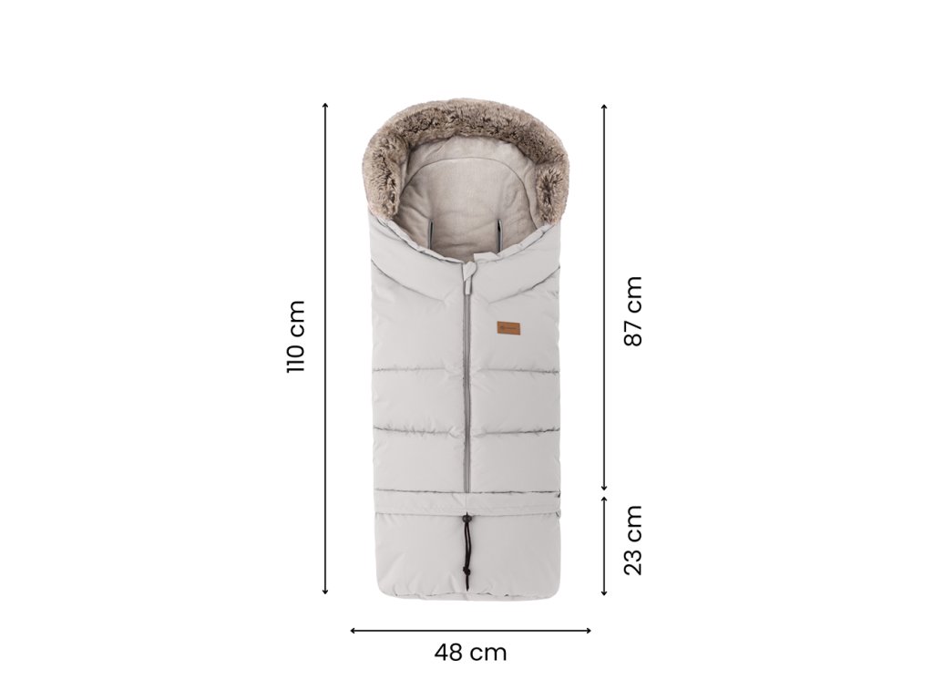 - 4v1 – odopnutím spodnej časti zmeníte veľkosť fusaku na menší, ktorý sa hodí aj do vaničky alebo autosedačky, a pripevnením kožušinky – získate ochranu proti vetru.