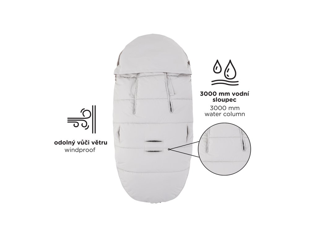 - Regulácia teploty vďaka zipsom, ktoré sú po stranách celého fusaku (možno odopnúť celú hornú časť a spodnú časť fusaku možno použiť ako samostatnú vložku)