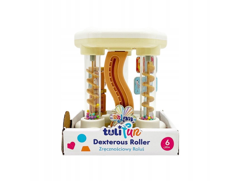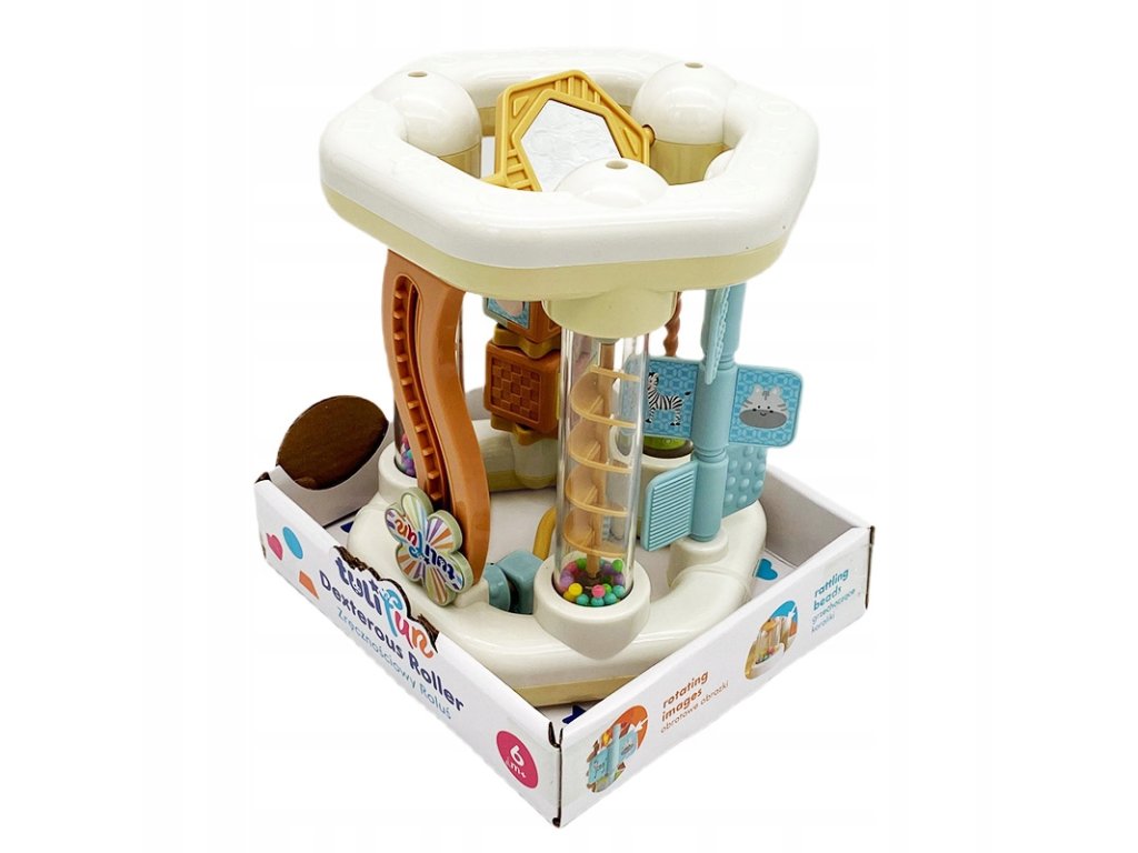 - Hračka, ktorá pri kotúľaní po podlahe povzbudí bábätko k lezeniu a rozmanité prvky a presýpajúce sa guličky prinesú veľa zábavy!